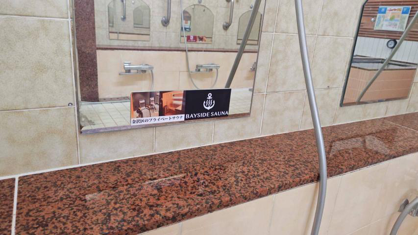 この度、六浦駅近くで長年愛され続ける「亀遊館」様にご協力いただき、浴場の鏡にBAYSIDE SAUNAの広告を掲載しました!