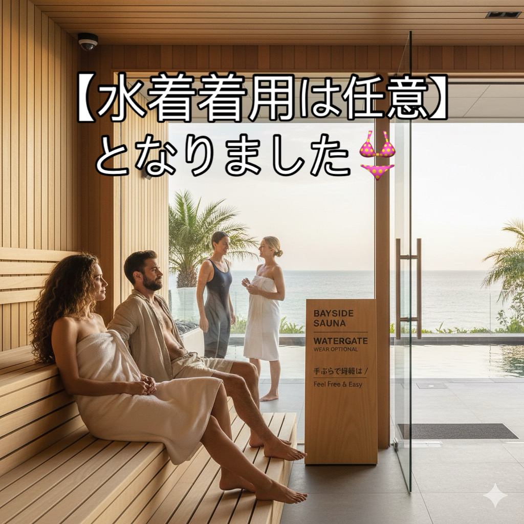 ใ“ใฎๅบฆใ€ใŠๅฎขใ•ใพใฎใ”่ฆๆœ›ใซใŠๅฟœใˆใ—ใ€ใ‚ตใ‚ฆใƒŠๅ†…ใงใฎๆฐด็€็€็”จใ‚’ๅฟ…้ ˆใ‹ใ‚‰ไปปๆ„ใธๅค‰ๆ›ดใ„ใŸใ—ใพใ—ใŸใ€‚