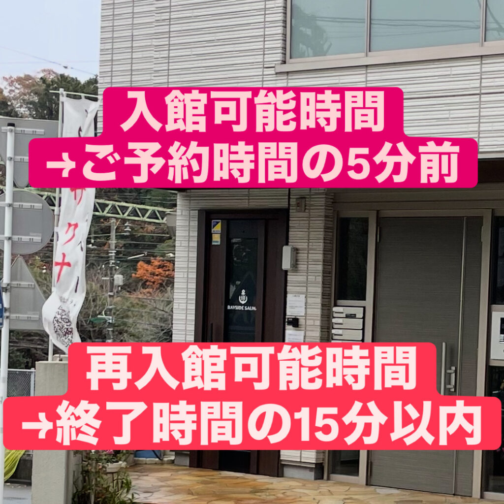 - 再入館: 忘れ物などでの再入館は、ご予約終了時間の【15分以内】まで可能です。